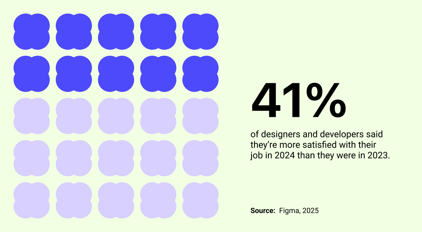 1. 41% of designers and developers say they were more satisfied with their job in 2024 than in 2023. (Figma, 2025)