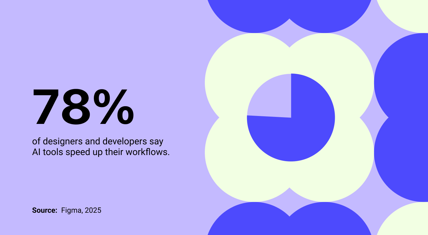 2. Efficiency is the main driver, with 78% of professionals saying that AI tools significantly speed up their workflows. (Figma, 2025)