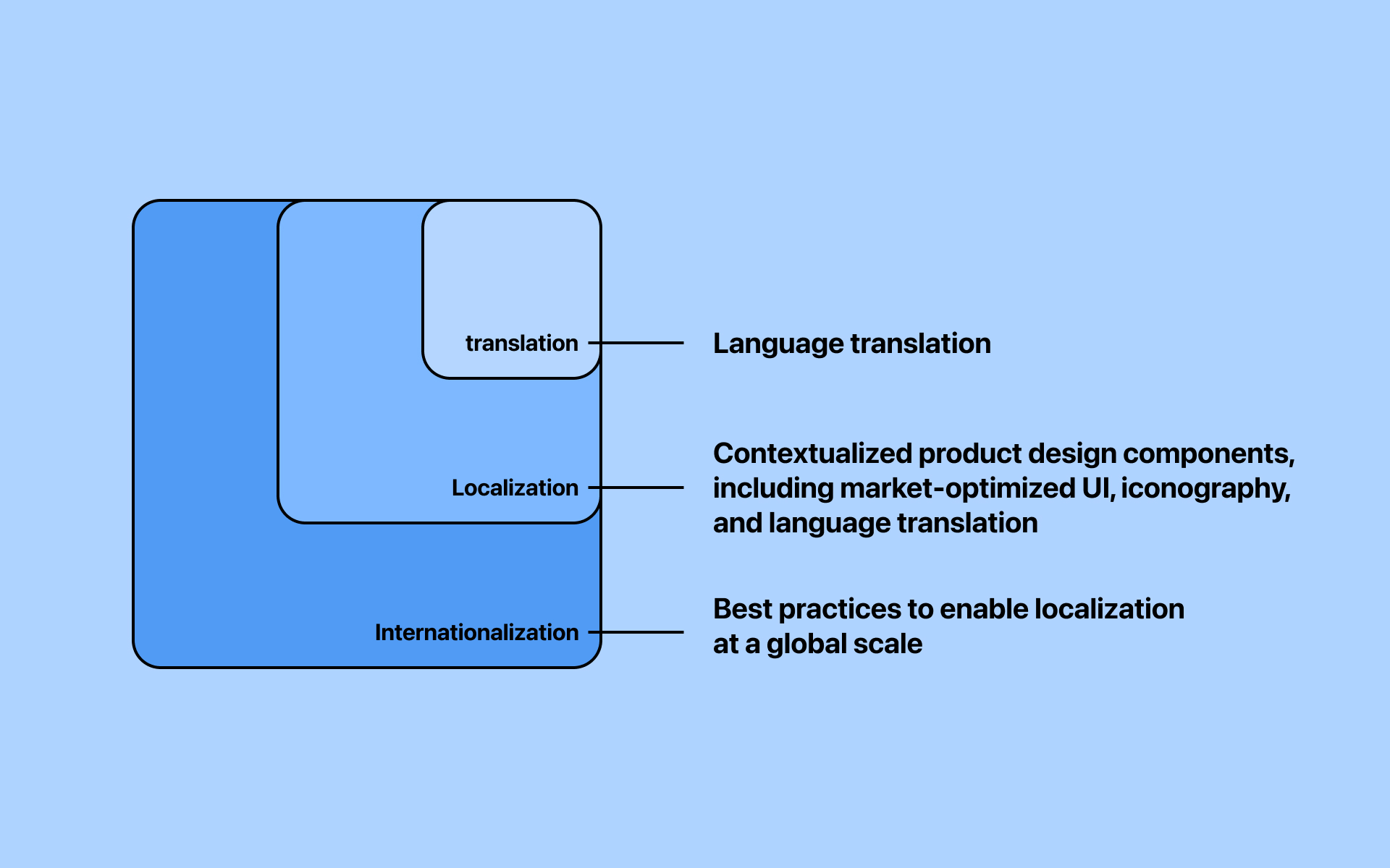 The process of localizing a product also includes internationalization, which ensures the product can adapt to new cultures at scale. Internationalization is the process of designing and creating software so that it can be adapted to various languages and countries without engineering changes. For example, establishing proper date, time, and currency formats. If you saw the date 9/12/22, would you read this as September 12 or December 9? Without internationalization frameworks, the user experience can become quite confusing.
