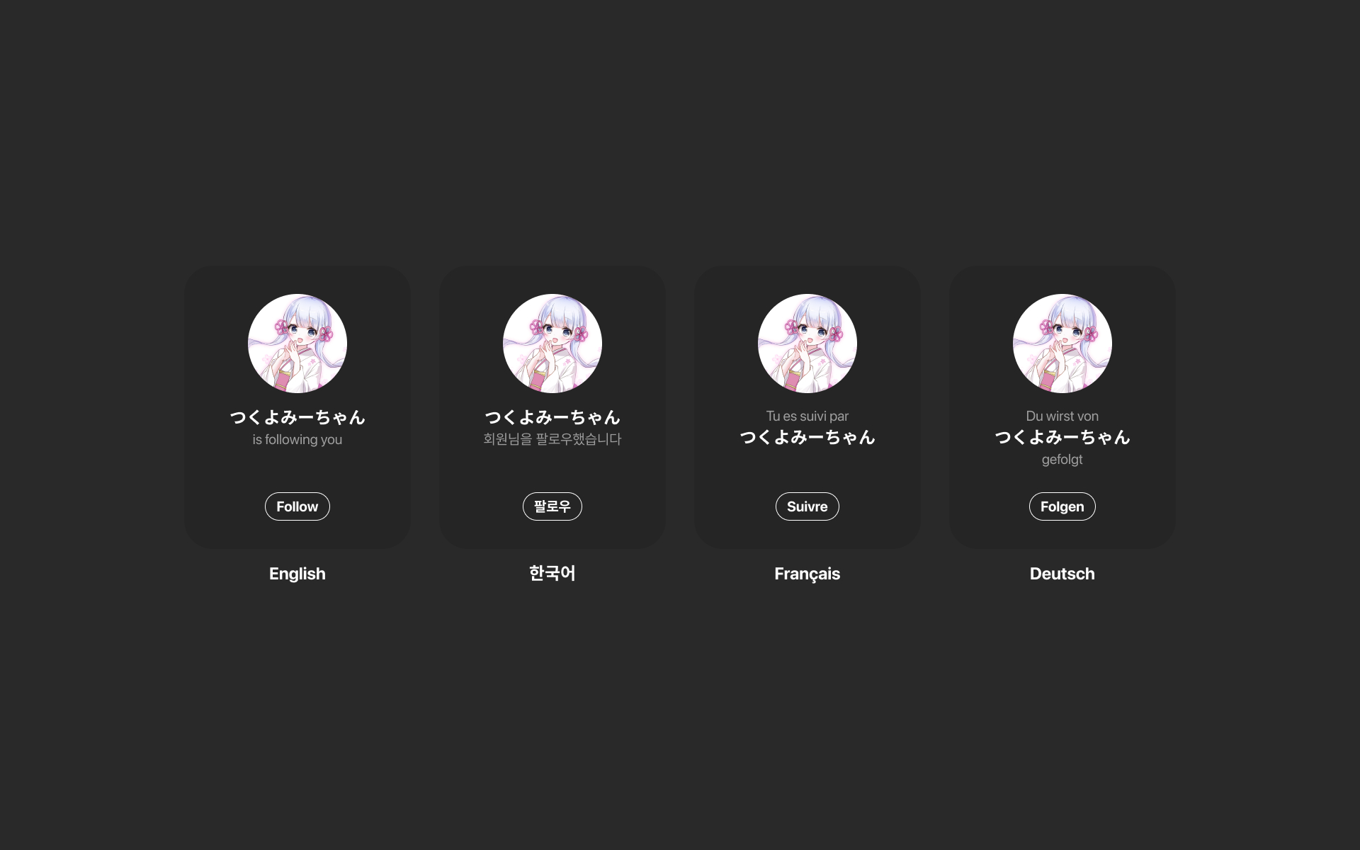 Good localization is not about translating words. It’s about redesigning how sentences are assembled for each language. Patterns that work naturally in English don’t automatically scale to other languages, especially in dynamic UI text like notifications. Assumptions such as “a name always comes first” or “English sentence structure is universal” tend to break down quickly once you move beyond English. In many languages, names appear in different positions, or they aren’t the grammatical subject of the sentence at all. That’s why global products don’t simply reuse English UI structures. While the overall layout may stay the same, the way text blocks are constructed needs to be flexible enough to accommodate different grammatical systems. In this process, the focus often shifts from “who did the action” to “what state the user is now in.” This is why, for example, German notifications commonly use passive constructions that place the recipient as the subject. Música’s approach reflects this thinking as well: instead of fixing the sentence around the name, the design defines the flow of the text first and inserts the name as a variable that can appear wherever the language requires. This shift—from translating text to designing sentence structure—is at the core of effective localization.
