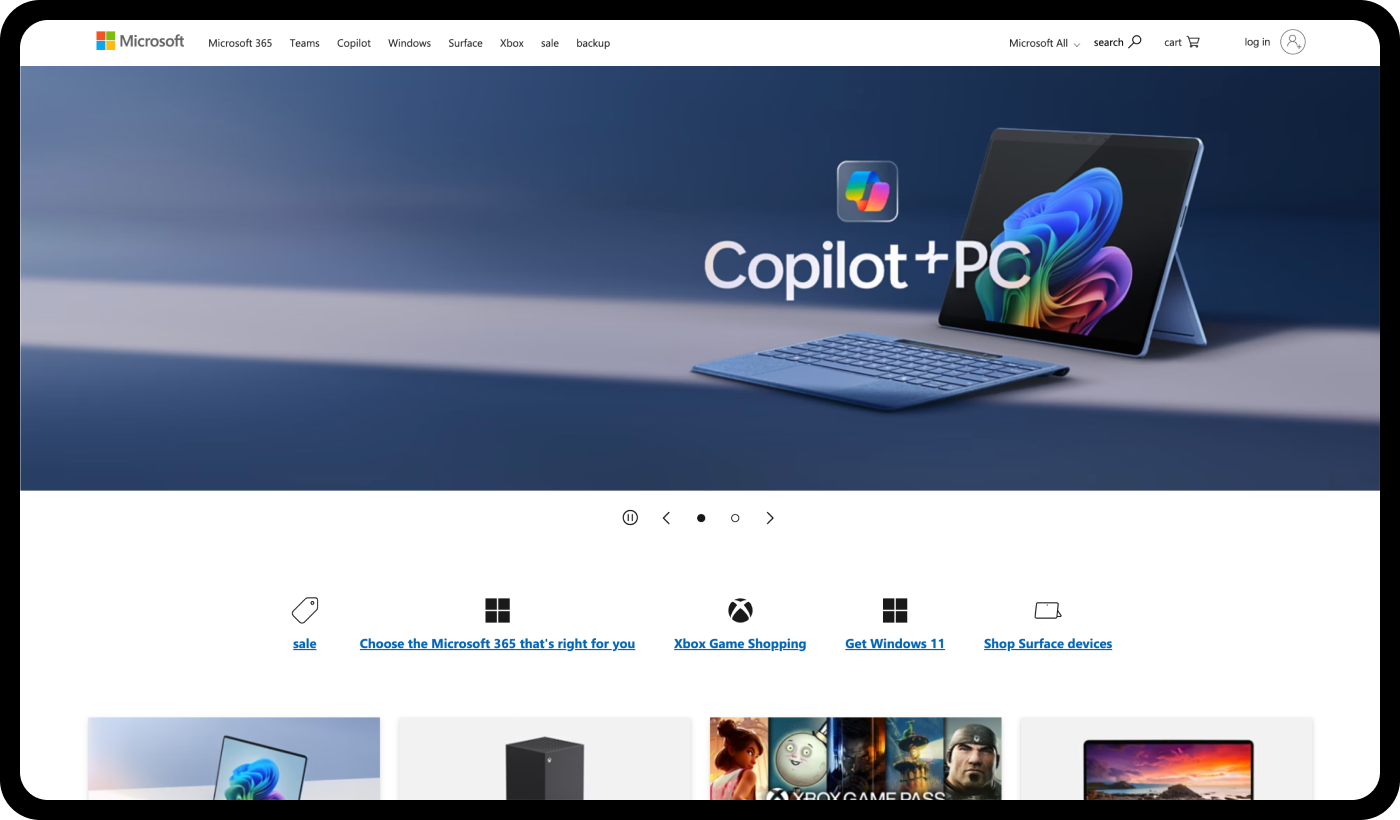While white is the base colour of Microsoft’s website, its logo incorporates red, green, blue, and yellow to represent its diverse range of products. Blue projects a sense of professionalism and trust, which users expect from Microsoft’s software solutions. Green creates a vibrant user experience, evoking the fun and playful feelings associated with its gaming products.