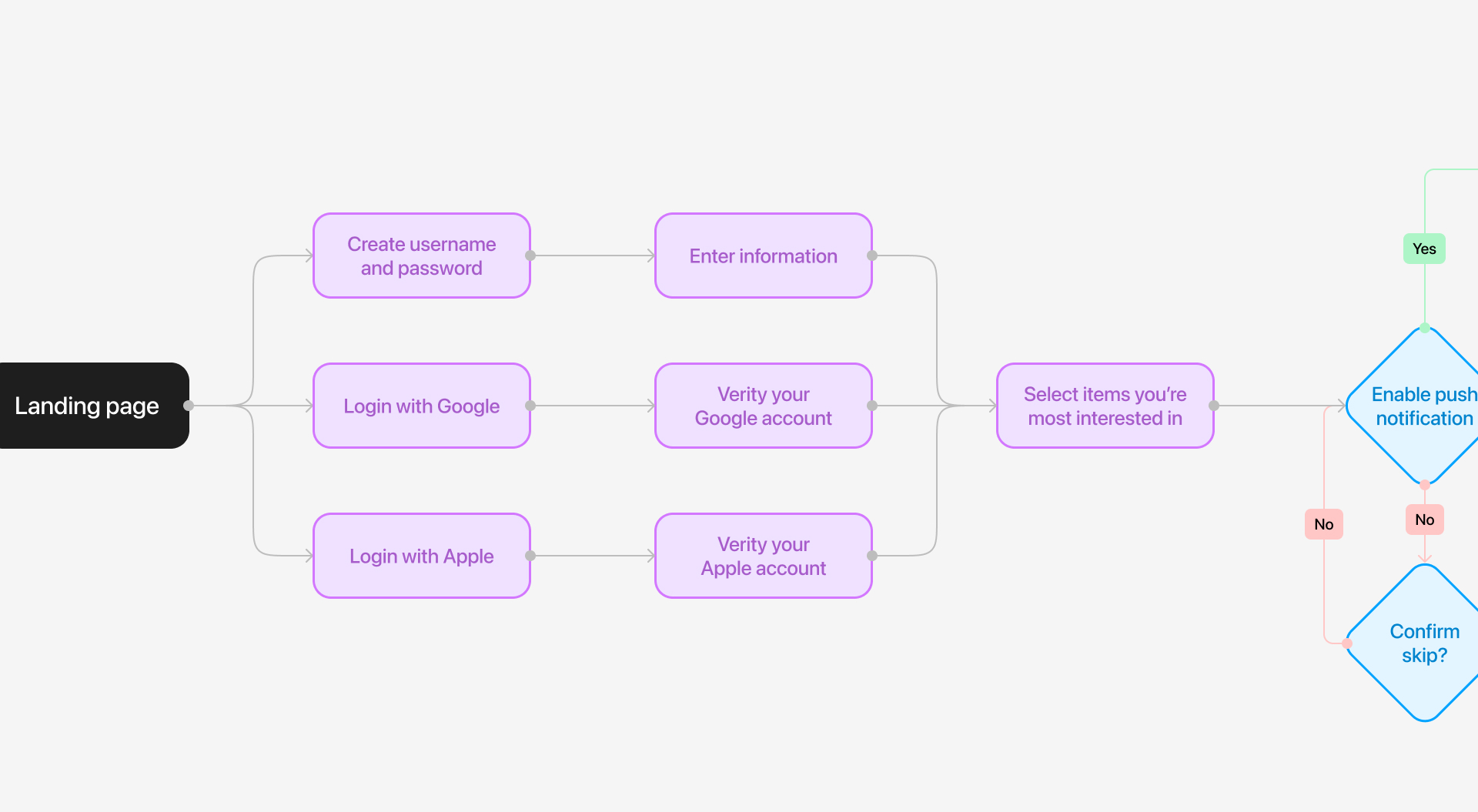 Smooth user experience. User flows highlight roadblocks early, so you can fix them before launch.