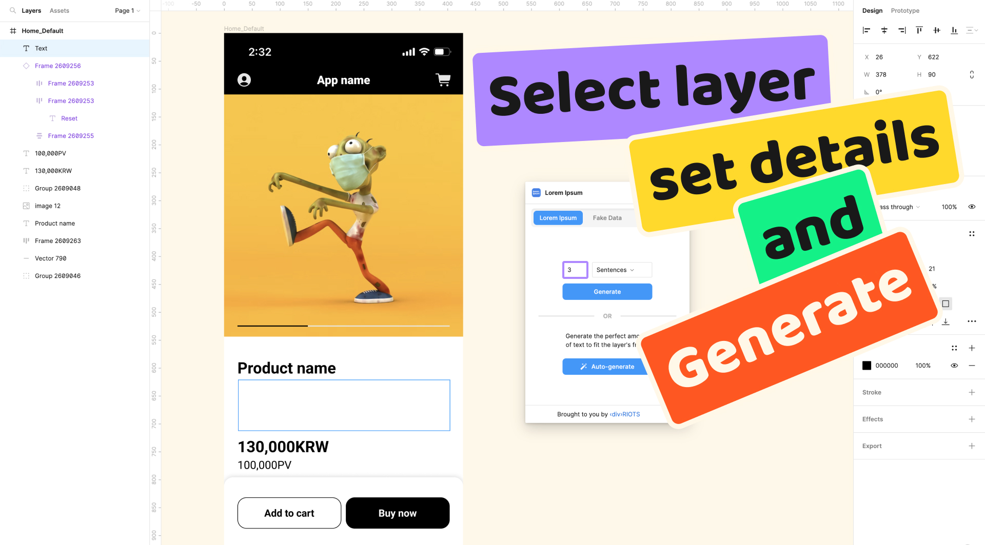 Creating a website or app, but the copy isn't finalized yet? Lorem Ipsum is a Figma plugin that generates—you guessed it—Lorem Ipsum dummy text to fill multiple text layers in designs. The plugin also supports Figma's Quick Actions, allowing you to quickly generate text without even opening the plugin window and choose from eight different generator libraries, including Pirate Ipsum and Pizza Ipsum.