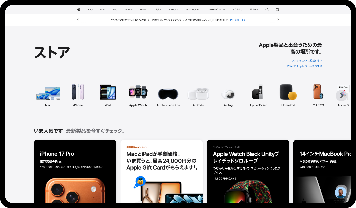 Apple is known for its sleek and user-friendly tech products. The use of white, black, and space gray creates a premium aesthetic with a touch of sophistication and innovation. The clean light gray canvas of its website allows its products to take center stage, providing users with a visually pleasing experience.