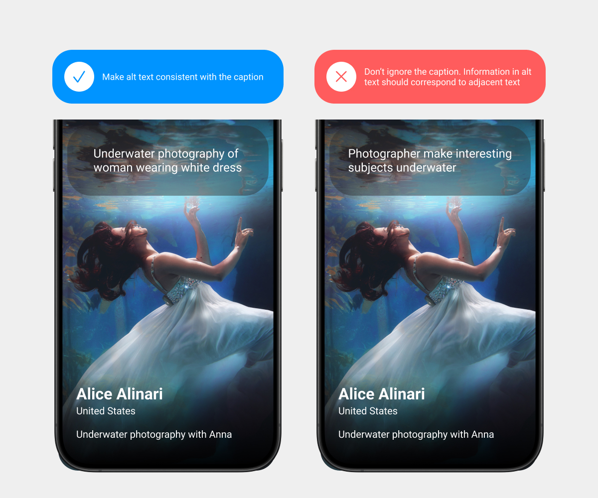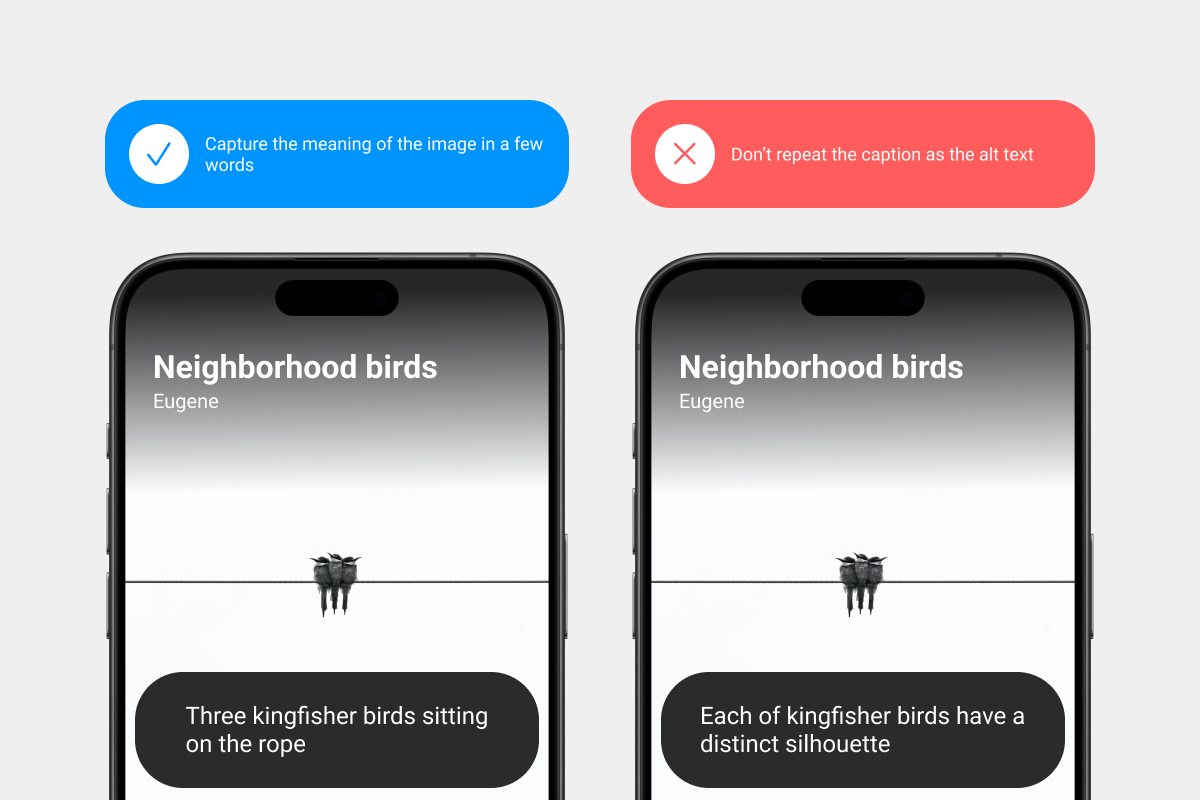 Good captions support the image rather than duplicating its information. A well-written caption makes it easier to write alt text.