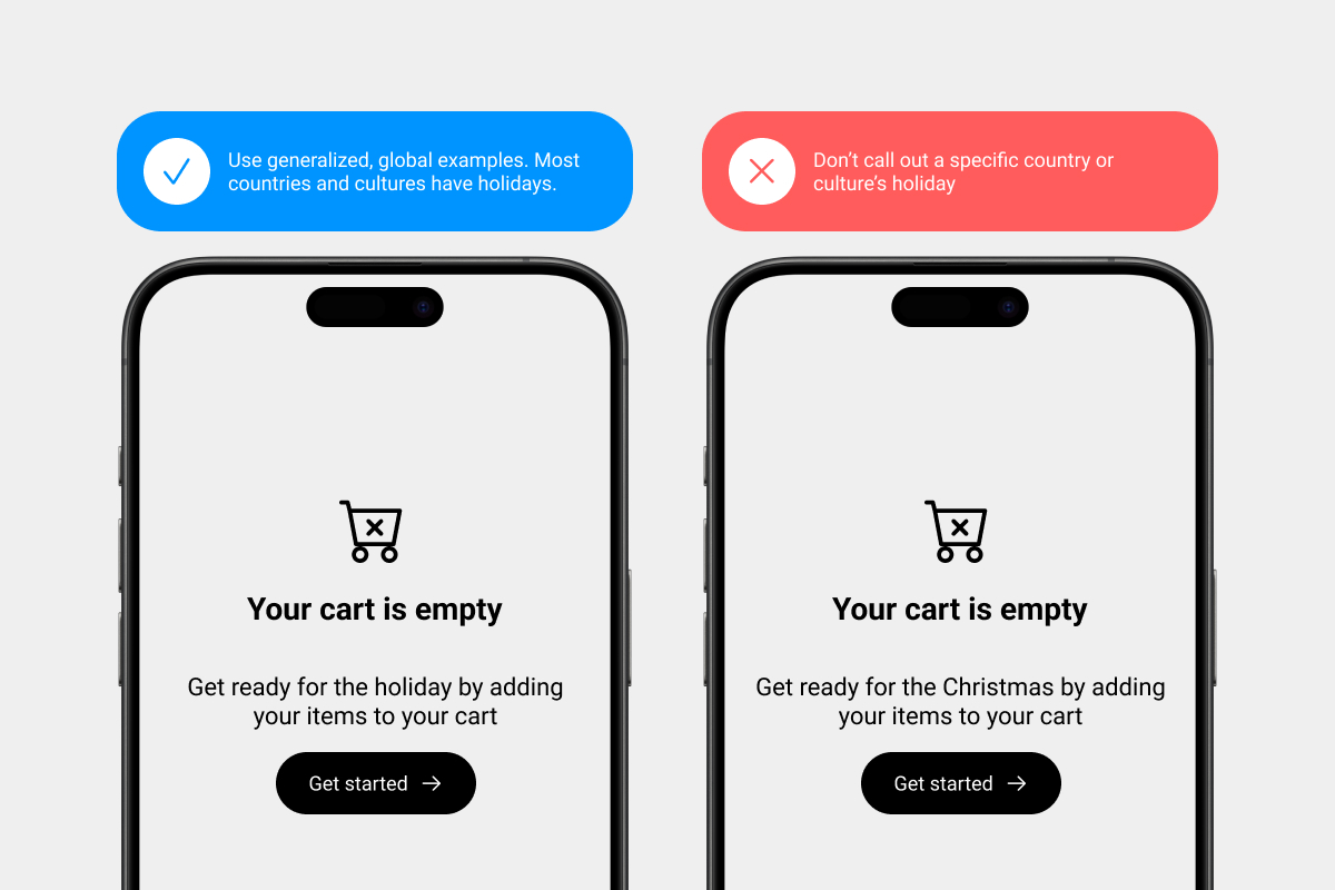 References to local places, holidays, and companies won’t always make sense to global audiences.