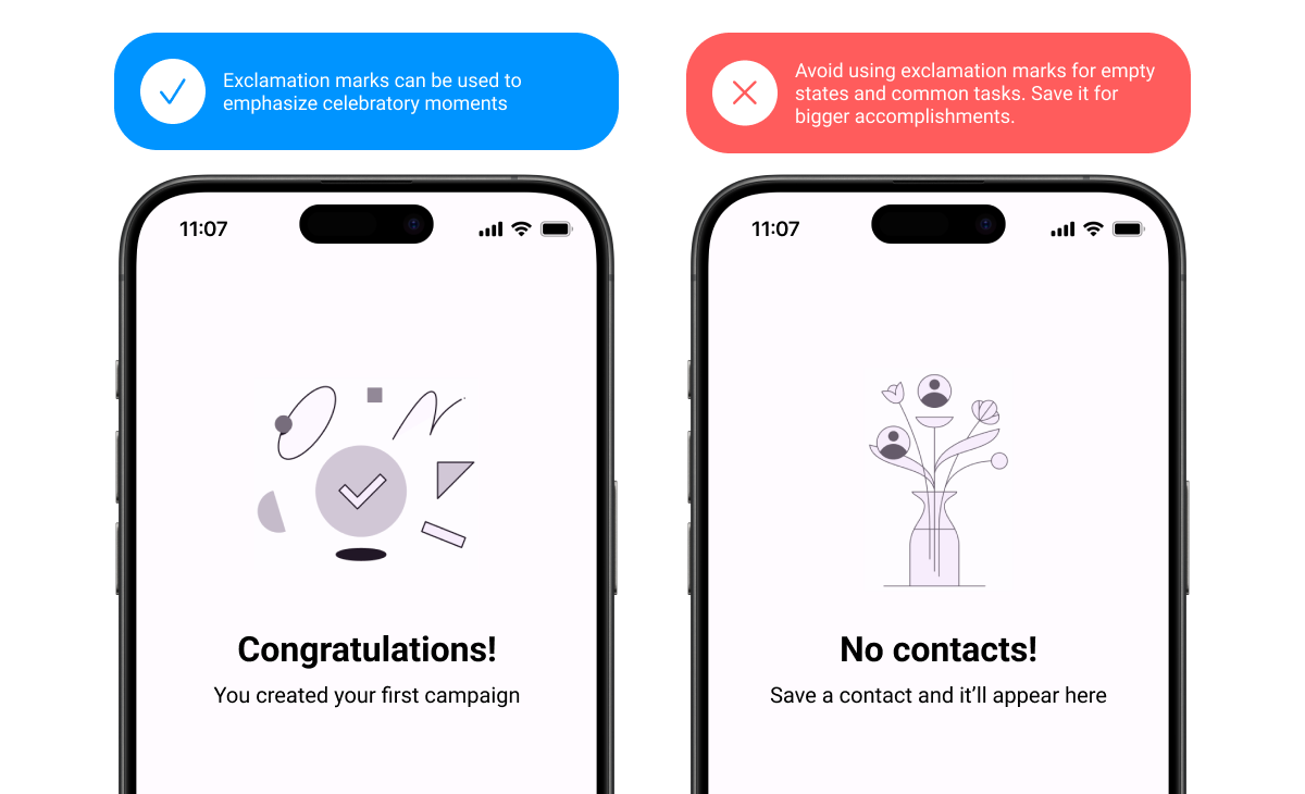 Copy link Use exclamation points sparingly